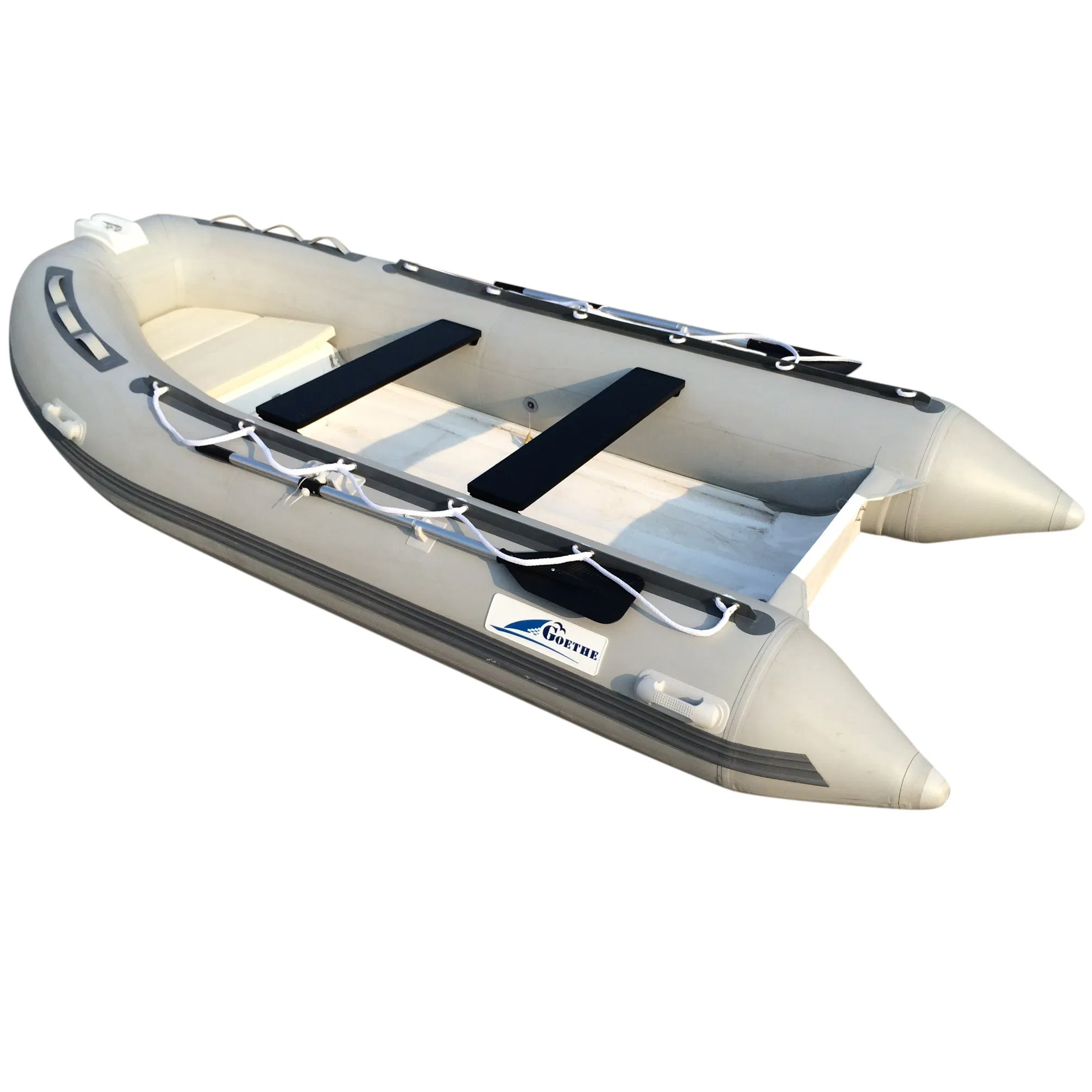 RIB390 Boat Hull Inflatable Fishing Motor Aluminum Orca Mini Catamaran Speedboat 13 Foot Center Console Boat For SaleQingdao Goethe Yacht Co., LtdModel:RIB390Length:390CMTotal width:177CMNo. of chamber:3Tube Diameter :42CMPeople capacity:5Max Power:30HPPacking Weight:200kg Thickness of PVC:0.9mmCol......